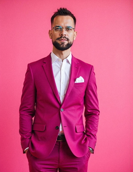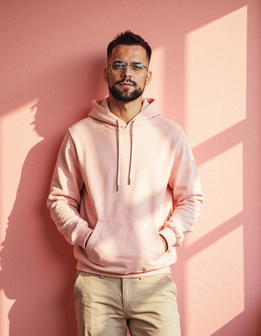 Stand out on dating apps, LinkedIn, and personal profiles with professional-quality pink studio photos.